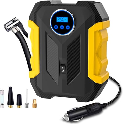 De 150 PSI con presión máxima de 150 PSI y flujo de aire de 35 l/min. Puede inflar el neumático de coche 195/55/R15 de 0 a 35 psi en menos de 5 minutos, pantalla digital e iluminación LED, la bomba de compresor de aire portátil.
